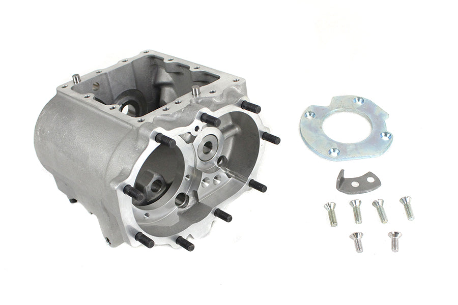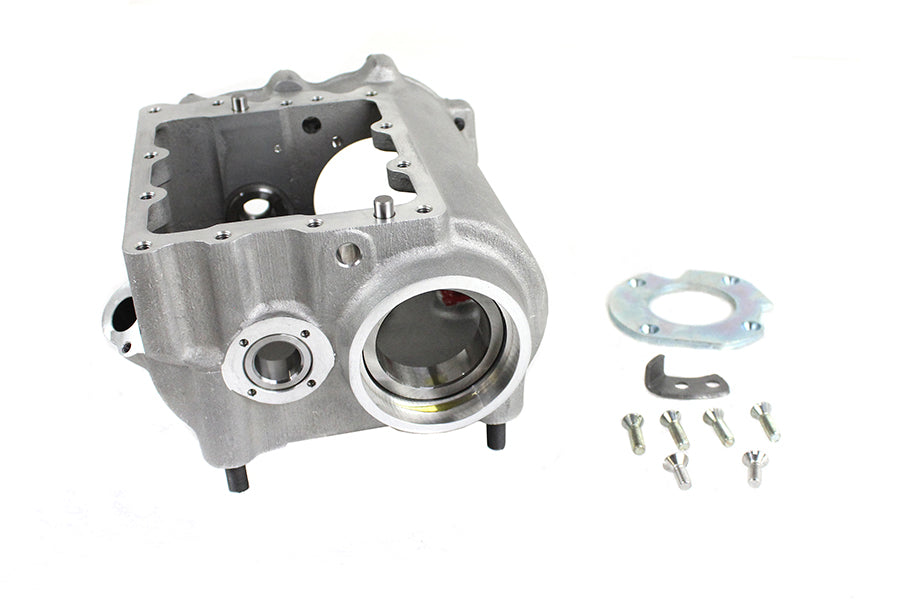 Transmission case with mount studs case races and countershaft bushings. Studs should be installed with protrusion as noted: kicker studs 7/8 (22.2mm) mount studs 15/16 (23.8mm) for kick start applications.