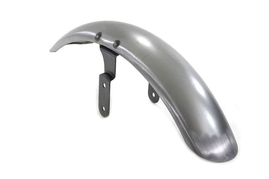 Fender is constructed of steel with braces for a 19 wheel on 49mm forks. We suggest pre fitting the fender prior to painting.
