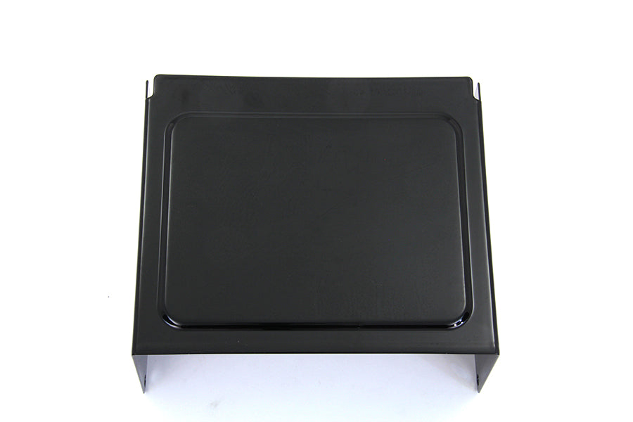 Embossed style battery side cover features a black finish. For use with a standard lead/acid wet battery.