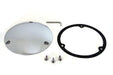 Our V-Twin chrome smooth derby cover is a stock replica replacement three bolt derby cover. The cover is made from a chrome die-cast construction and has a smooth domed design. Hardware is included.
