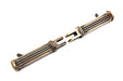 Rider footpeg set features three raised ribs with forked ends constructed of solid brass which will age and patina when exposed to the elements.