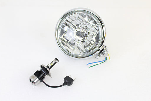 V-TWIN MANUFACTURINGOut of stockBates style 5-3/4 headlamp features a chrome shell with eye bolt and a 12 volt LED H-4 bulb. Features eyelet mounting.FITMENT 0 / Custom applica...