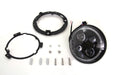 Headlamp bulb unit features an LED 12 volt bulb with a white halo encircling a black lens. Will fit most 7 headlamps. LED headlamp unit includes black contoured 7 headlamp rim and mount ring. Order connector harness plug separately.