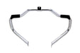 Chrome engine bar features integrated rubber pads for foot rests. WARNING: This engine/frame bar may provide limited leg and cosmetic vehicle protection under unique circumstances (fall over while stopped very low speed slide). They are not made nor intended to provide protection from bodily injury in a collision with an automobile or any other object. *Note: UPS may consider this part as packaged oversize for shipment as compared to the actual weight which will result in higher shipping costs.