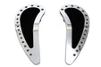 Chrome driver half moon with rubber footboard set. Mounting bracket features 8 spacing. Mounts are included.
