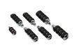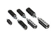 Male end mount footpeg sets with matching shifter peg with a unique soft rubber pad to reduce vibration. Kit includes two male end mount small footpeg sets a male end mount footpeg set and a matching shifter peg.