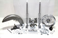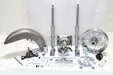 FLST style front end assembly includes hard chrome fork assembly for single disc applications on FLST models. Includes hard chrome fork assembly with polished sliders chrome upper triple tree and a black lower triple tree. In addition to the front end assembly the kit includes a 5 piece chrome fork cover set 7 headlamp and bracket 16 chrome wheel speedometer drive black left side caliper 11-1/2 drilled single disc and a FLST style fender. This assembly can also be used on 1948-1984 FL 1971-1984 FX and 1984-1999 FXST.