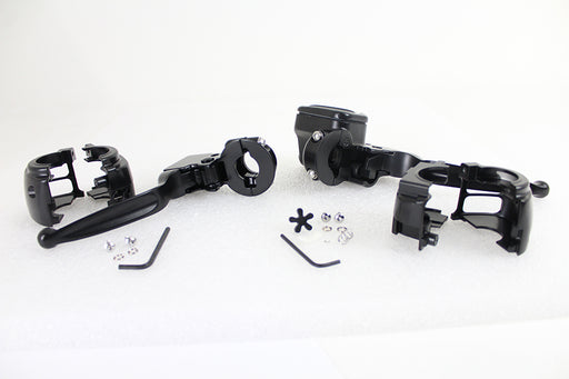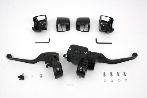 V-TWIN MANUFACTURINGOut of stockBlack smooth contour handlebar control kit without switches has a 9/16 bore master cylinder brake and clutch lever switch housings and hardware....