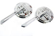 Air flow style mirror set with straight billet stems features a chrome finish and measures 4 diameter face. The center portion is raised with relief cuts.