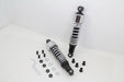 12-1/2 FLT shock set features a black body with a chrome spring and top cap. Set is assembled with heavy duty adjuster cam cover. **Warning: Installing a lowering kit or shorter shocks will decrease initial ground clearance. The motorcycle will be lower to the ground and care should be taken to avoid bottoming especially over bumps or in turns.