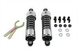 Chrome 12-1/2 Progressive Suspension 412 Series shocks are manufactured from the finest material available. Features a black finished inner body. Magnum 412 Series chrome shocks are nitrogen with six-stage automatic damping and an adjustable spring preload. Shock cartridge is black. All shocks are measured eyelet to center of eyelet. Mount studs not included with shock sets. *Note: Stock length for FXR FXD 1988-2003 XLH 883 1979-1987 XL. When installed on FLT models shock is 1/2 shorter than stock length. When shock is installed on 1988-2003 XLH 1200 & 883 it is 1 shorter then stock length Warning:Installing a lowering kit or shorter shocks will decrease initial ground clearance. The motorcycle will be lower to the ground and care should be taken to avoid bottoming especially over bumps or in turns.