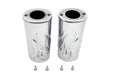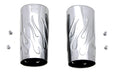 Flame style fork tube cover set features a chrome finish and four 1/4 -28 thread screws with a 1/2 flange head.