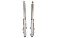 Assembly features chrome sliders with springs hard chrome fork tubes and components installed. For non fairing models. Assembly has an overall length of 26-3/4 and is for dual disc applications fits 1 axle. Sold as a pair.