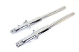 49mm assembly features chrome sliders with springs hard chrome fork tubes and components installed. Assembly has an overall length of 26-3/4 . Set can be used with 25mm axle. Assembly is for dual disc applications fits 1 axle. Sold as a pair.