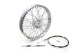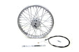 19 x 1.85 Chopper style wheel with a flat style rim 2-7/8 wide hub 40 chrome spokes. Brake cable and anchor bar are included. Wheel has 3/4 bearings and is a drum brake design. This mini brake wheel is a hill holder only so you don't roll back at a stop sign or light NOT designed for actual braking. **NOTE: All spokes on wheel need to be inspected and re-torqued after 500 miles of original installation. *Note: UPS may consider this part as packaged oversize for shipment as compared to the actual weight which will result in higher shipping costs.