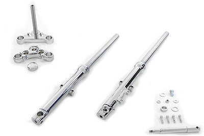 V-TWIN MANUFACTURINGOut of stockFork assembly 39mm with chrome sliders features chrome triple trees axle kit dust cover set. Unit accepts 11-1/2 brake disc and left side single...