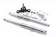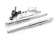 Hard chrome fork tube assembly with chrome sliders features a chrome top tree a black lower stem and internals installed and have a total length of 32-1/4 . Accepts a single 11-1/2 disc. Forks are 32-1/4 long from top tree to axle position. Assembly includes neck bearings top nut and axle kit. Order fender wheel and tin set separately.