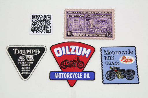 V-TWIN MANUFACTURINGLow stockSeries 14 cloth patch set features 5 patches. This set includes a Motorcyclepdia QR 1913 Motorcycle Stamp Oilzum WR Patent Tag and Delivery Stam...