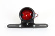 LED tail lamp assembly is constructed of black aluminum and features a cateye style. Assembly includes a license bracket.
