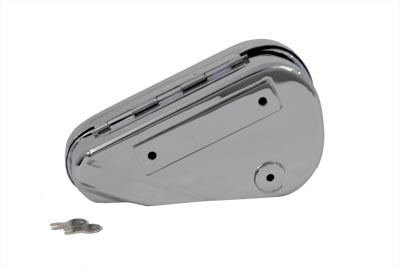 V-TWIN MANUFACTURINGOut of stockChrome left side oval tool box includes keys. Tools are not included. Tool box measures 6 at its widest and 3-1/4 at its smallest.FITMENT 0 / C...