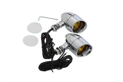 V-TWIN MANUFACTURINGIn stockChrome mini bullet lamp set with 12 volt 10 watt amber bulbs and clear lenses and single wire. *NOTE: For show or decorative use only and is not D....
