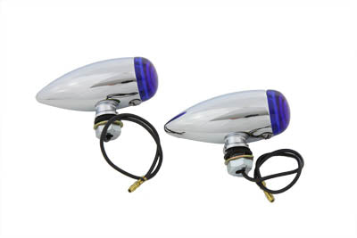 V-TWIN MANUFACTURINGIn stockChrome mini bullet lamp set with 12 volt 10 watt clear bulbs blue lenses and a single wire. *NOTE: For show or decorative use only and is not D....