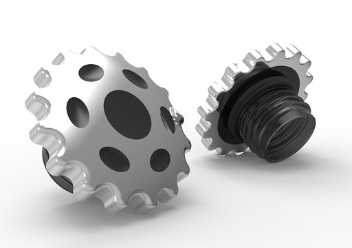 Sprocket Gas Cap Set Vented and Non-Vented Chrome 1983 / 1984 FL 1984 / 1984 FXST 1985 / 1995 FXST 1986 / 1995 FLST