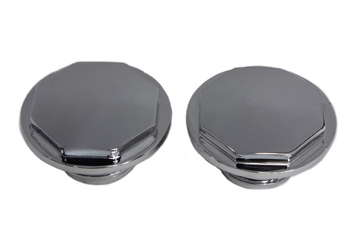 V-TWIN MANUFACTURINGIn stockFlip up style gas cap set features a chrome finish and has one vented and one non-vented gas cap. *NOTE: Each cap insert has set screw to align fli...