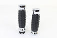 Chrome alligator style grip set is oversized and larger than standard grips. The superior non-slip molded rubber functions well in all weather conditions. It also helps reduce torsional vibrations throughout the handlebars. Sold in a quantity of 2.