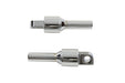 Chrome 1 extended footpeg mount yoke set with male ends. For use with cats paw style footpeg set with female ends.