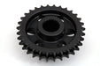 30 tooth one-piece solid steel engine sprocket features a black oxide finish. This sprocket will replace the complete compensator assembly for weight reduction and a more responsive drive train. Use original bolt and washer from existing compensator assembly. Order TYK 84 link primary chain separately.