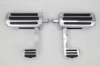 Chrome footpeg set features rubber insert and retractable heel rest to fit female peg mounts.
