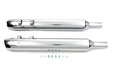 Chrome touring style mufflers are 31-1/2 overall length with a 3-1/2 outside diameter and mounts as stock and include slash style end cap. Order replacement T-bolts separately if required. **CAUTION: These exhaust products are not legal for sale or use in California on pollution controlled vehicles. These products are intended for non-highway only. Sold as a set of 2.