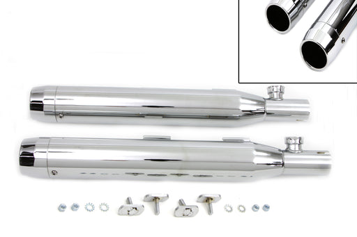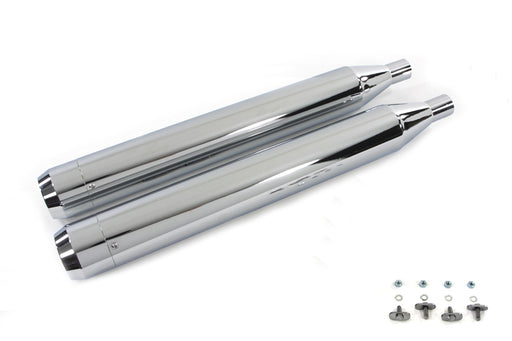 V-TWIN MANUFACTURINGIn stockChrome touring style mufflers are 31-1/2 overall length with a 3-1/2 outside diameter and mounts as stock and include slash style end cap. Order ...