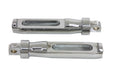 Batique style footpeg set with male ends is chrome plated with mixed slot. *NOTE: These will not fit passenger on 2018-up Softail models. Bolts available separately; V-Twin #37-0020 chrome bolt set and #37-1679 zinc bolt set.