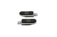 Male end mount footpeg set features rubber insert in the chrome body of the peg with chrome speed lines. Set of two. *NOTE: These will not fit passenger on 2018-up Softail models.Bolts available separately; V-Twin #37-0020 chrome bolt set and #37-1679 zinc bolt set.