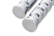 Chrome contour grooved footpeg set. Set of two. *NOTE: These will not fit passenger on 2018-up Softail models.Bolts available separately; V-Twin #37-0020 chrome bolt set and #37-1679 zinc bolt set.