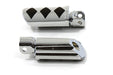 Chrome adjustable female driver peg set with rubber diamonds features 180° of spline to allow mounting at different angles. *NOTE: These will not fit passenger on 2018-up Softail models.