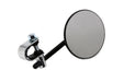 Round black steel mirror with clamp on round stem for stock lever brackets.