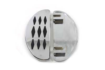 V-TWIN MANUFACTURINGIn stockChrome billet half moon footboard set features a black rubber insert with a diamond design. Mounting bracket features 8 spacing.FITMENT 1980 / UP ...