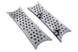 Chrome shooter style footboard set is rectangular. Mounting bracket features 8 spacing.