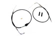 Throttle and idle cable set in braided stainless steel with a black coat is stock length. The casing length is 43 for the idle cable and 39-1/2 for the throttle cable. Stainless steel braided with a black coat throttle and idle cable set includes the switch control and a 90° elbow fitting with PVC coating. The stainless steel braid is tightly woven for a bright quality consistent finish. The black coat is UV resistant heat bonded non yellowing grade for a long service life.