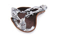 Double steel saddle solo seat features a honey brown finish with a black spring carriage. .