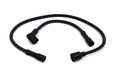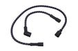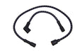 Sumax spark plug wire set is black with blue tracer. A combination Kevlar Helically Spiral Wound Core at 350 ohm per foot resistance delivers greater spark energy while improving power idle and fuel efficiency. Cloth jacket is rated at 450°F and resists heat oil and abrasion. These wires will work on all models with point or electronic ignitions. Set includes 21-1/2 lead with 180° plug boot & 180° coil boot as well as 9 lead with 180° plug boot and 90° coil boot.