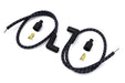 Sumax spark plug wire set is black w/ blue tracer. A combination Kevlar Helically Spiral Wound Core at 350 ohm per foot resistance delivers greater spark energy while improving power idle and fuel efficiency. Cloth jacket is rated at 450°F and resists heat oil and abrasion. These wires will work on all models with point or electronic ignitions. For use with universal sets with 90° boots. Set includes two 24 leads with black plug boots.