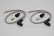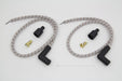Sumax spark plug wire set is grey w/ brown tracer. A combination Kevlar Helically Spiral Wound Core at 350 ohm per foot resistance delivers greater spark energy while improving power idle and fuel efficiency. Cloth jacket is rated at 450°F and resists heat oil and abrasion. These wires will work on all models with point or electronic ignitions. For use with universal sets with 90° boots. Set includes two 24 leads with black plug boots.