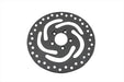 Polished stainless steel disc has 3/8 vented swirl style slots. Bolt holes are counter sunk.
