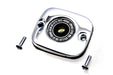 Front master cylinder cover is chrome plated and includes the gasket and stainless steel screws.