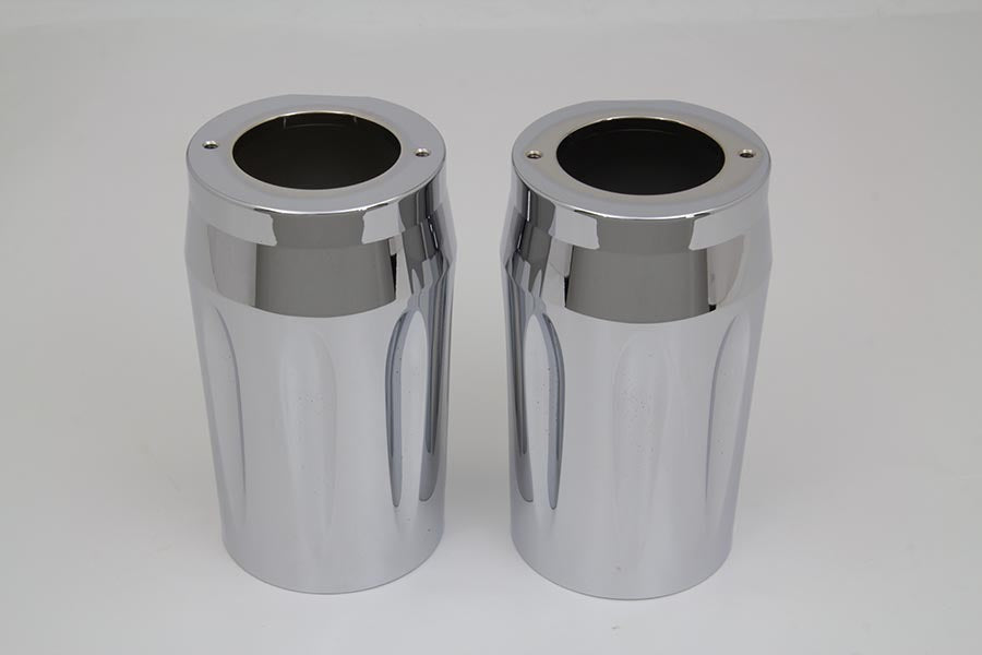 Upper fork slider cover set features a smooth design and a chrome finish. Attach using 10/24 x 1-5/8 hex flange screw (OEM #10200042).