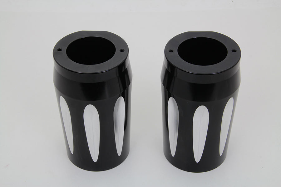 Upper fork slider cover set features a smooth design and a black finish. Attach using 10/24 x 1-5/8 hex flange screw (OEM #10200042).